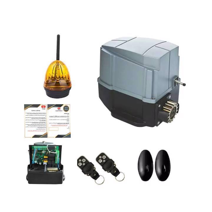 مرکز کنترل و باکس، چراغ هشدار دهنده (فلاشر)، یک جفت چشمی فتوسل، 2 عدد ریموت کنترل، سنسور مادون قرمز، دفترچه راهنما