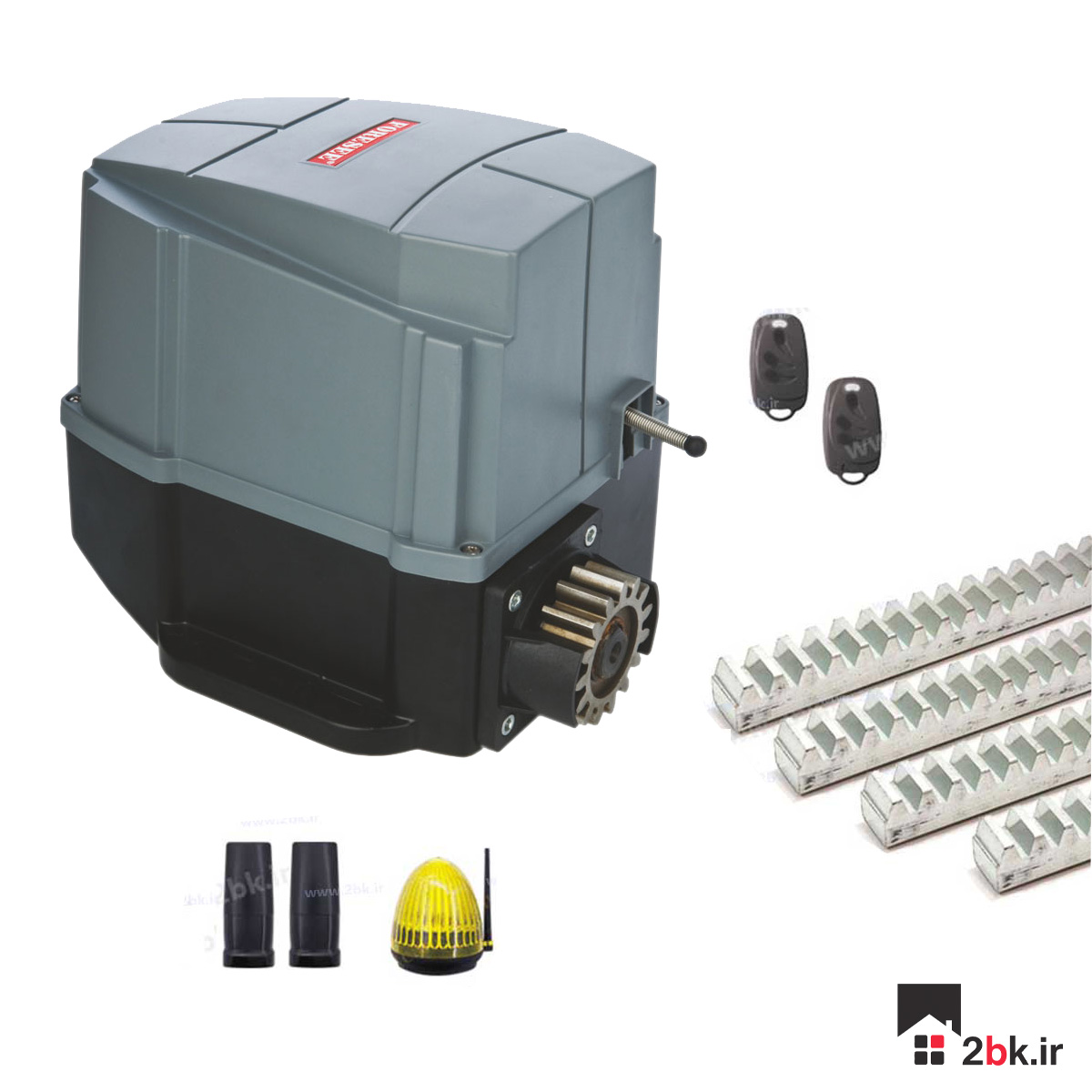 این مدل از موتور ریلی اتوماتیک شرکت بتا اف 500 نام دارد که با ولتاژ 220 کار میکند و دارای قدرت موتور 1600 کیلوگرم است که با این قدرت میتواند درب هایی تا عرض 11 متر را جابجا کند و همچنین برای جلوگیری از شکستگی قطعات گیربکس و سایر اجزای داخلی را از جنس فولاد ساخته اند که بوسیله ی ریل های نصبی برروی درب به حرکت در می آید که شکل زیر گویای این عملکرد است: