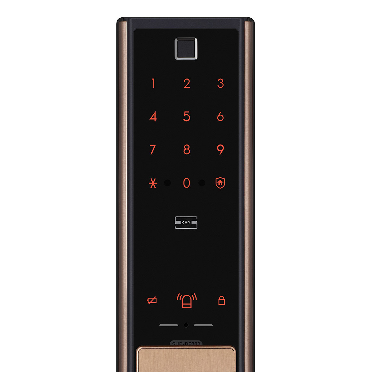 قفل سامسونگ SHP-P739 بسیار با کیفیت است و یکی از آخرین سری از دستگیره دیجیتال سامسونگ میباشد. این قفل با امکانات دسترسی متنوعی مانند رمز عبور، کارت، اثر انگشت، بلوتوث، وایفای و ریموت کنترل مجهز شده است. همچنین، این قفل دیجیتال دارای سیستم رمز ادمین، قفل دوبل، قفل کودک، ضد هک، ضد سرقت، ضد حریق و ورود بیصدا است. دستگیره دیجیتال سامسونگ P739 همچنین دارای مغزی دو زبانه فولادی و ضد دیلم میباشد. با توجه به امکانات و مشخصات فراوان این قفل، آن را میتوان یکی از موانع قدرتمند در برابر سارقان و افراد غیر مجاز دانست. این دستگیره هوشمند از شرکت سامسونگ دارای ویژگی ها و قابلیت های خاصی هستند که در ادامه به آن ها خواهیم پرداخت: